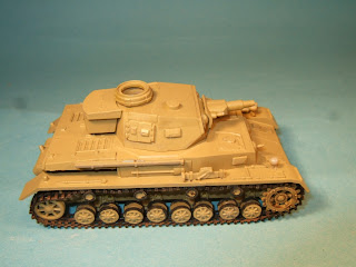 Here you find an update of the Panzer IV. Yesterday I put on the second track and drilled seven hoels in the upper Hull for some little parts like the lamps or the fire extinguisher. Then I started to glue the first little parts. I hope to finish the Building at Weekend.